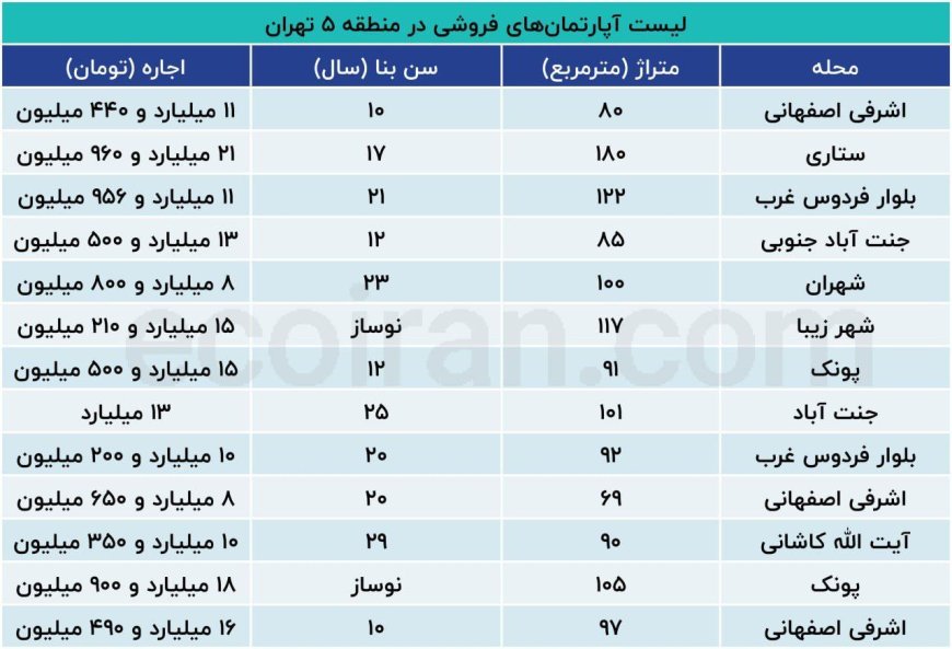 بررسی بازار خرید و فروش ملک در منطقه ۵ تهران که بر اساس دادههای بانک مرکزی در سالهای اخیر همواره جزو پرمعاملهترین مناطق پایتخت بوده است نشان میدهد که در طول یک سال اخیر، روند افزایش قیمت همچنان ادامه داشته است.