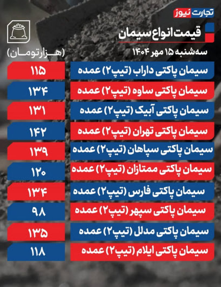 قیمت سیمان عمده امروز ۱۵ مهر ۱۴۰۴ اعلام شد. بازار سیمان طی چند هفته گذشته روندی باثبات را تجربه کرده و امروز نیز بدون هیچ تغییری در قیمتها دنبال شد. نه افزایش چشمگیری در تقاضا دیده میشود و نه فشاری از سمت عرضه که باعث جابهجایی نرخها شود.