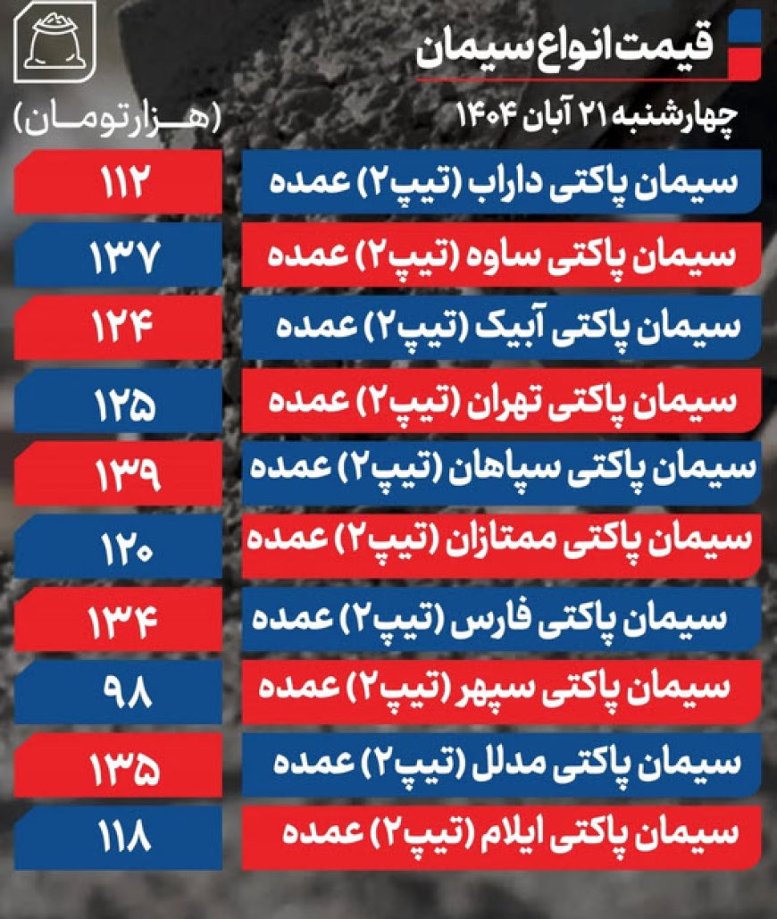 سیمان پاکتی آبیک _ (تیپ 2) عمده در محدوده 124 هزار تومان قرار دارد.
