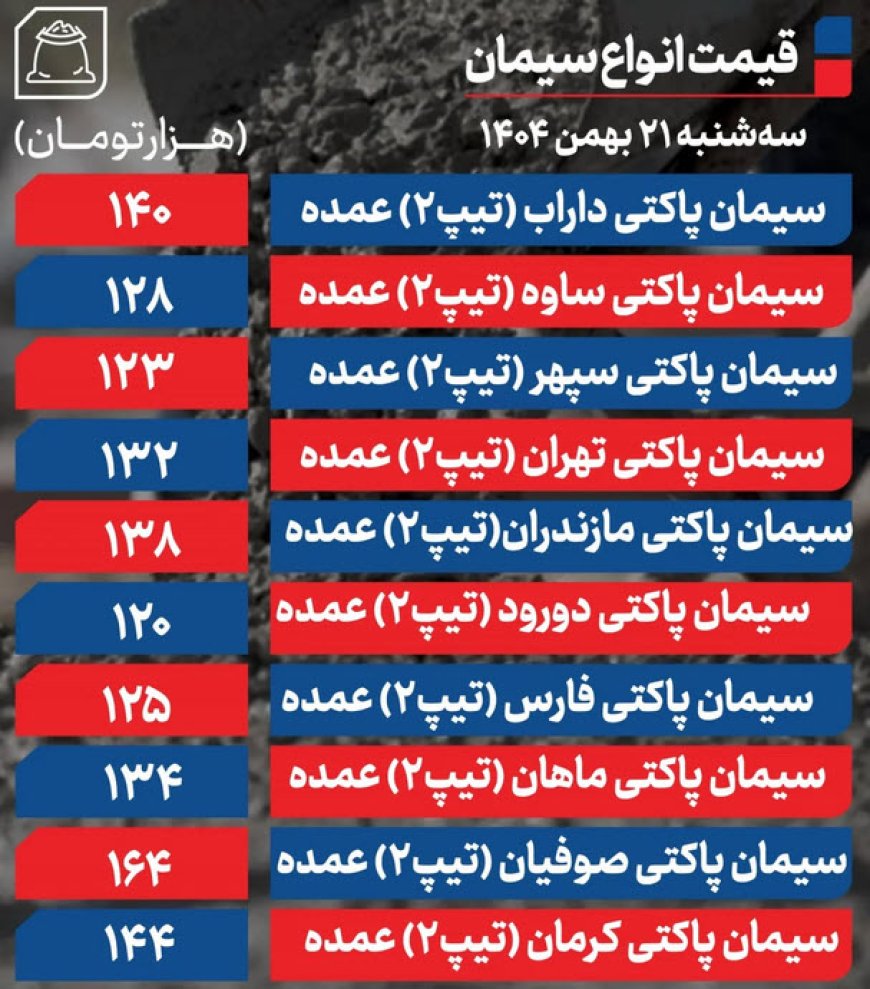 قیمت سیمان امروز ۲۱ بهمن ۱۴۰۴
