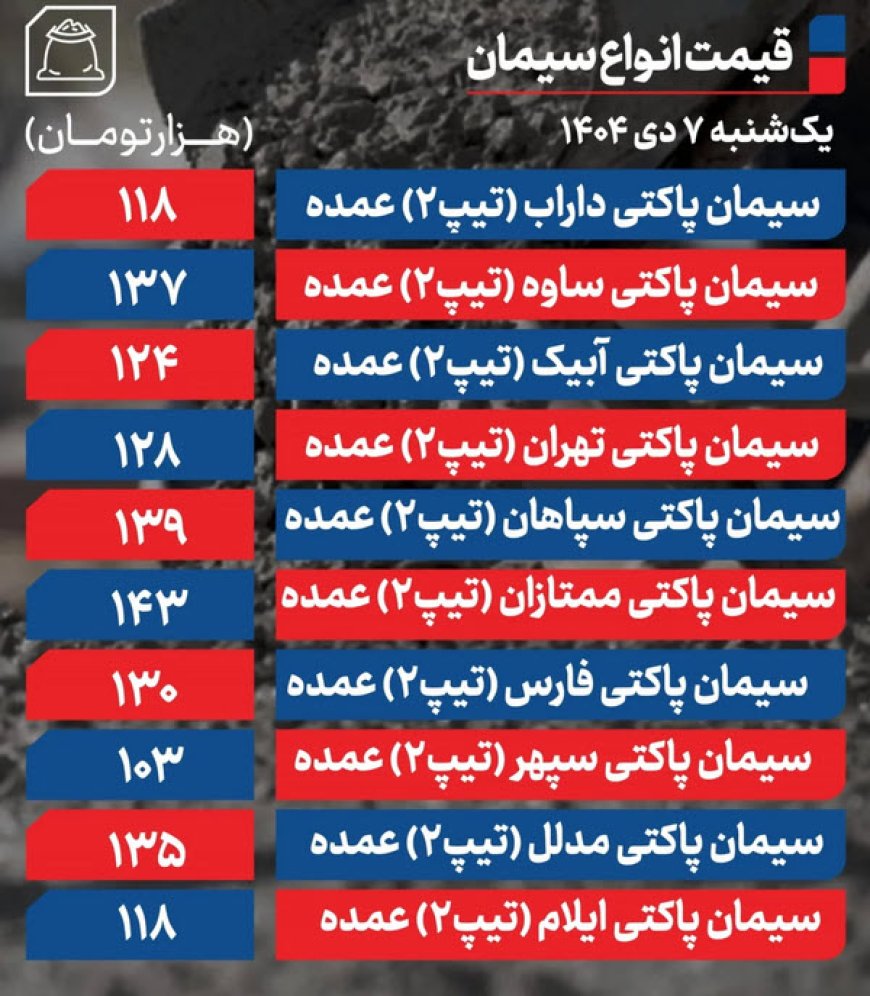 قیمت سیمان امروز ۷ دی ۱۴۰۴