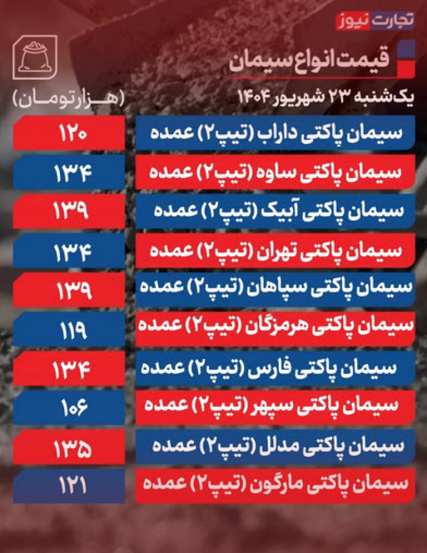 قیمت سیمان عمده امروز ۲۳ شهریور ۱۴۰۴