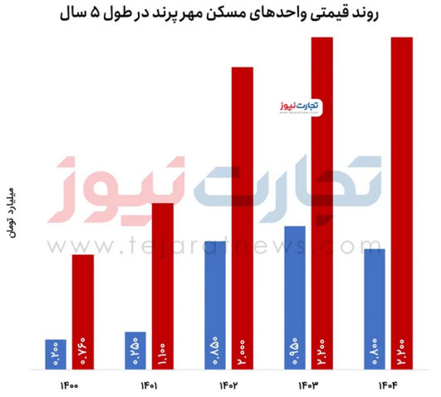 مسیر پرنوسان قیمت مسکن مهر پرند در ۵ سال گذشته