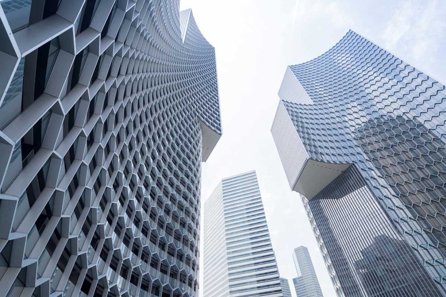 این مجموعه شامل دو برج برجسته است که با ویژگی های دو مجسه غول پیکر مفهومی ساخته شده و به برخی عرصه های شهری مدرن پیوند خورده است. طراحی نمای دو برج با توجه به الگوهای لانه زنبوری طراحی شده است. یکی از دلایل انتخاب طراحان برای الگوی نمای لانه زنبوری نصب راحت اتصالات فلزی در هنگام اجرا بود. این فرم در مقیاس بزرگ اجازه می دهد که نصابان هنگام اتصال قالب فرم های 6 ضلعی به راحتی بین طبقات حرکت کنند. البته مقیاس بزرگ هر بلوک لانه زنبوری هم در سرعت اجرای کار تأثیرگذار می باشد.