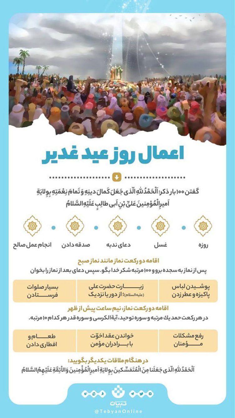 در این اینفوگرافیک اعمال روز عید غدیر آورده شده است.
