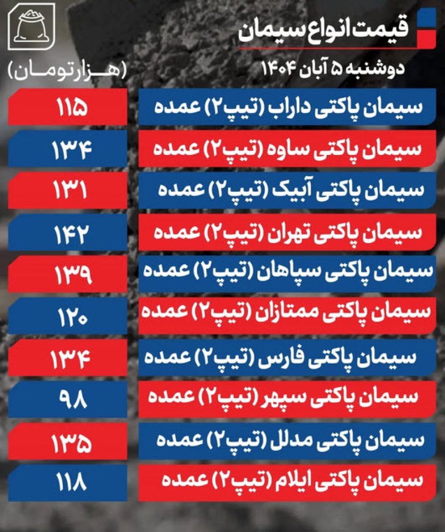 قیمت سیمان امروز ۵ آبان 1404